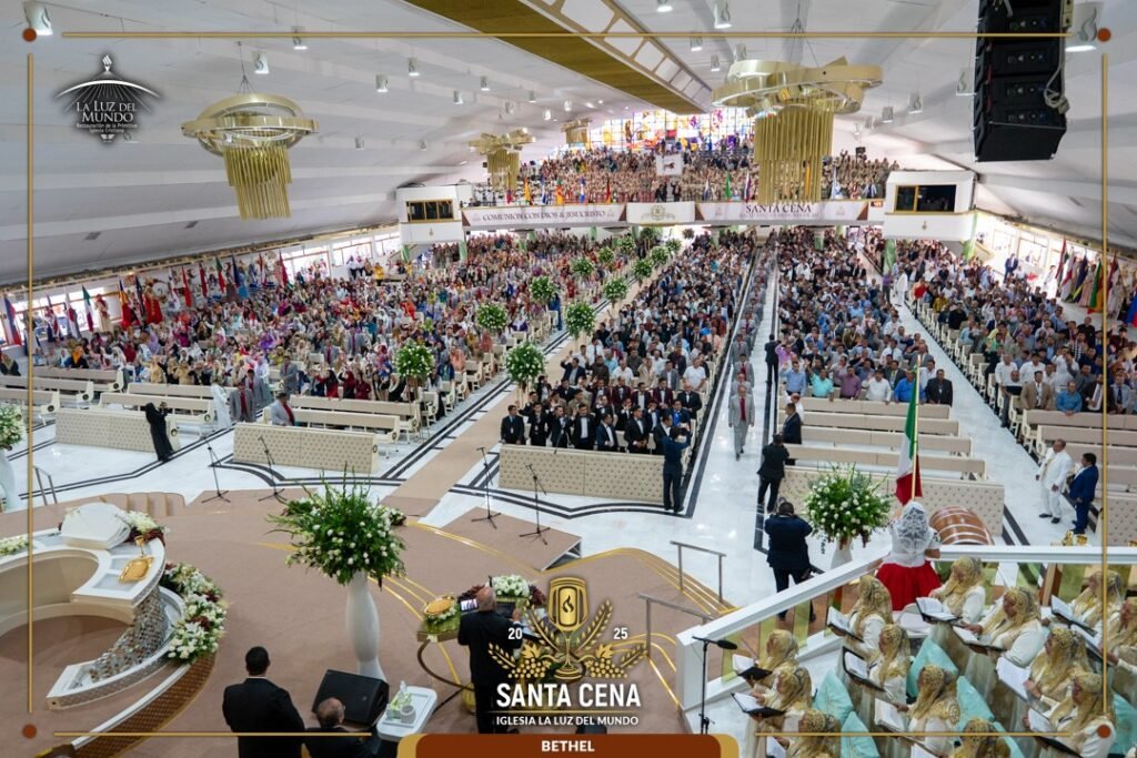 En la sede de la colonia El Bethel, miles de fieles se reúnen en el servicio de Santa Cena. Entre alabanzas y oraciones los congregados meditan en el glorioso sacrificio de Jesucristo. Los coros, con cánticos, invitan a los presentes a alabar a Dios y a nuestro Señor Jesucristo, en este día tan memorable.