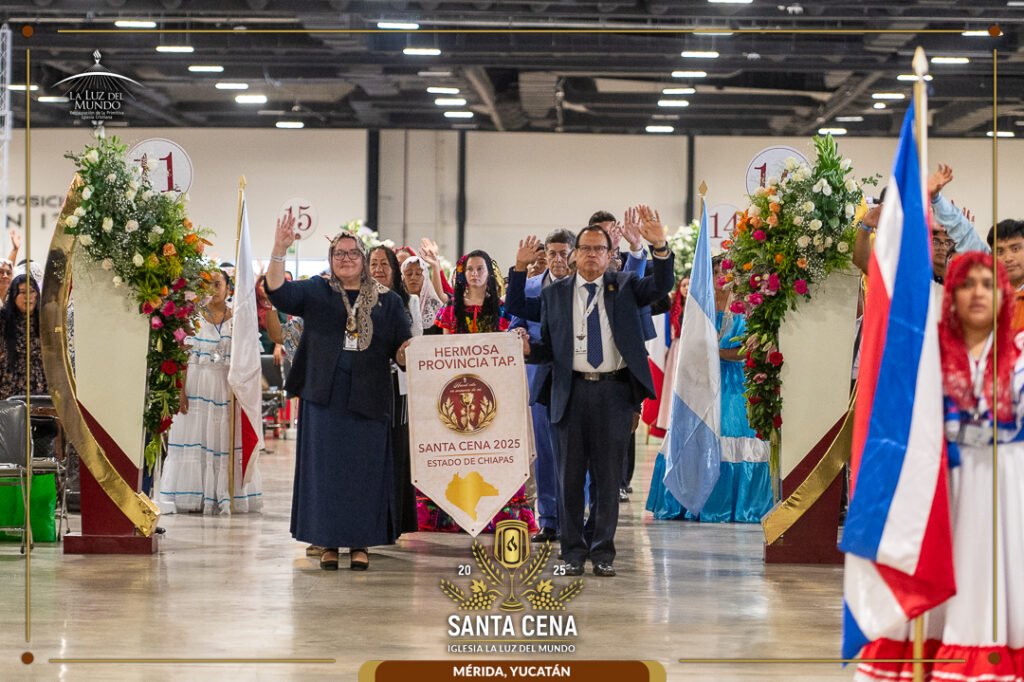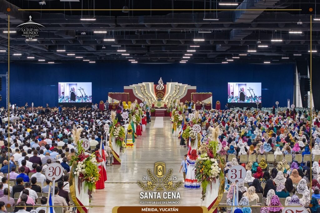 Congregaciones de fe de La Luz del Mundo provenientes de Chiapas, Campeche, Quintana Roo y Yucatán participaron de este sagrado memorial en el Centro de Convenciones Siglo XXI, uno de los recintos más grandes y emblemáticos del sureste mexicano. En punto de las 4pm dio inicio el Servicio de Santa Cena, donde los congregados, en un entorno de espiritualidad y reverencia, conmemoraron el glorioso sacrificio de Cristo en favor de toda la humanidad.